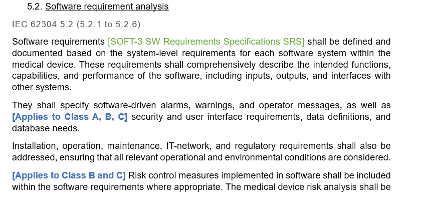Defines all functional, performance, usability, and regulatory requirements for the medical device software, ensuring full traceability, testability, and compliance with IEC 62304 and ISO 14971.