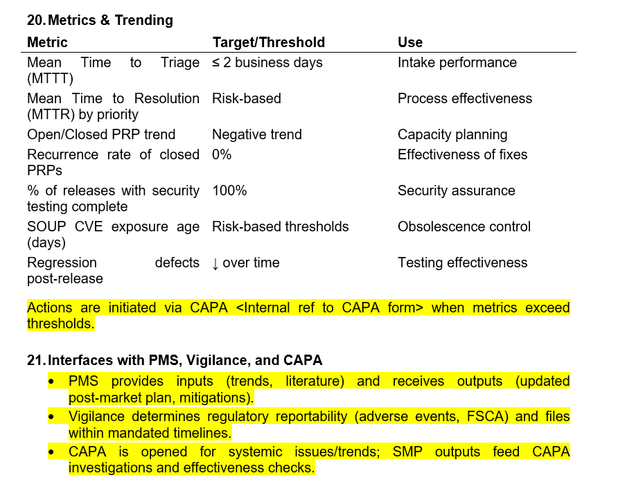 Defines the post-release maintenance process, covering feedback management, problem resolution, risk assessment, updates, and traceability to ensure ongoing software safety and regulatory compliance.