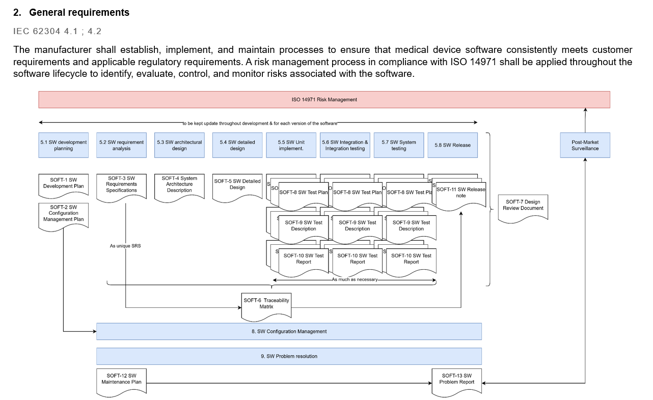 Download an entire system of templates (Procedure + templates) covering the entirety of the IEC 62304/AMD1:2015 standard. All templates are available in Word format (.docx) and can be customised. The templates contain the experience gained from several regulatory submissions for different software classes. It supports development and quality teams in preparing clear, consistent, and compliant documentation for medical device software.