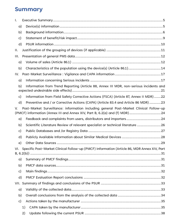 ✔️ Pre-designed sections, concrete examples of how to analyse and conclude to inspire your PSUR