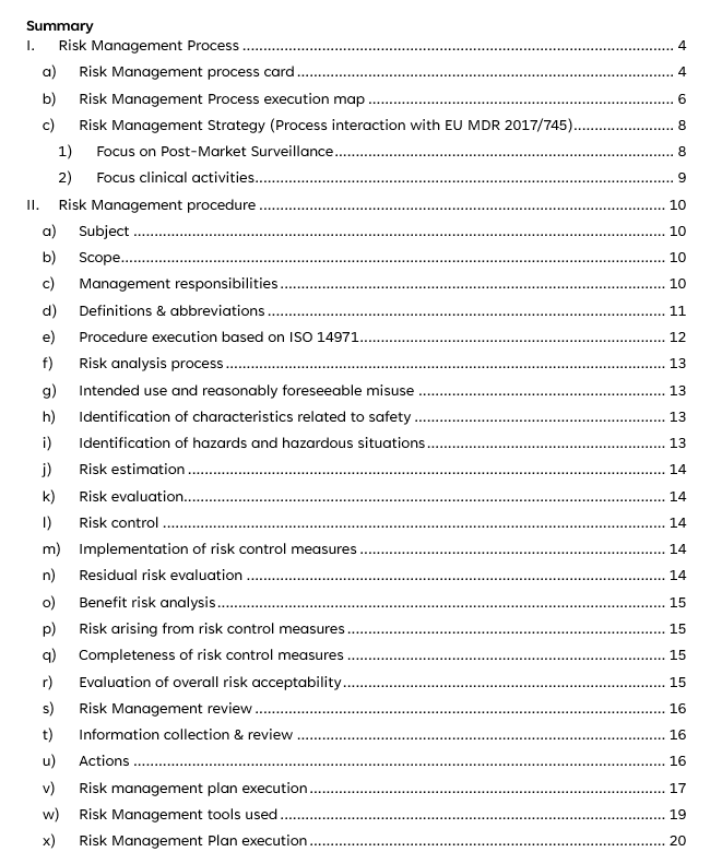 For each step & activites required in the Risk Management process by ISO 14971:2019 you will find :